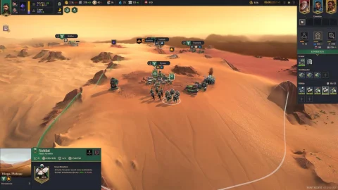 Daneben verbrauchen unsere Einheiten immer Vorräte, wenn wir sie durch die Wüste schicken wollen. Diese Vorräte regenerieren im eigenen Land, abseits davon aber sind sie sehr bald verbraucht und dann sterben unsere Krieger schneller als wir „Sandsturm“ sagen können.